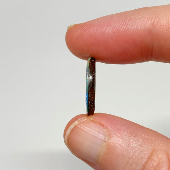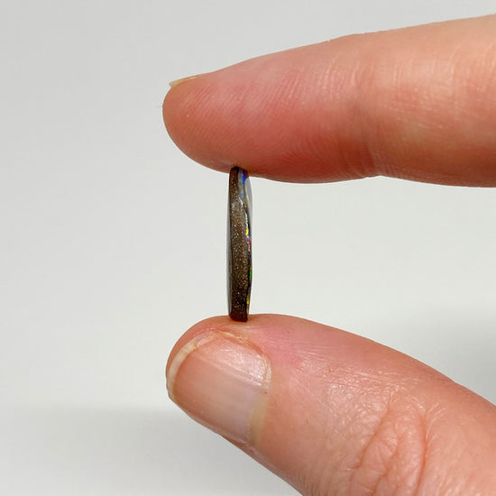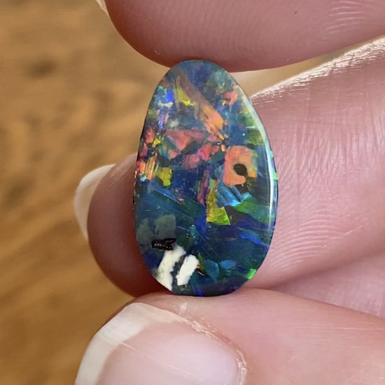 A small free-form boulder opal with brilliant full spectrum colors and a black body tone.