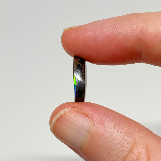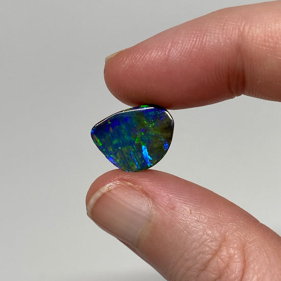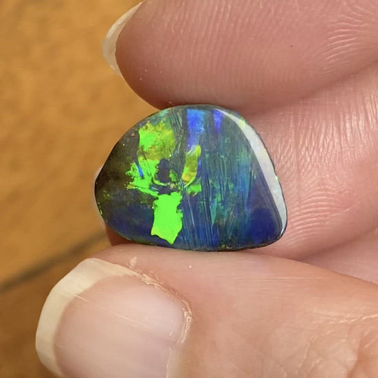 A small free-form boulder opal with brilliant green-blues and a black body tone.
