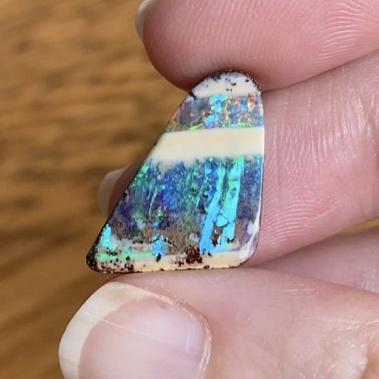 A wonderful geometric boulder opal with a colorful 'stripe and straw' pattern.