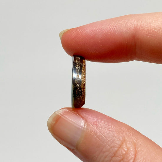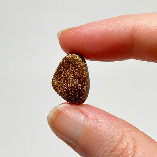 A very unusual boulder opal with broad flashes of pink-orange-red and greens.