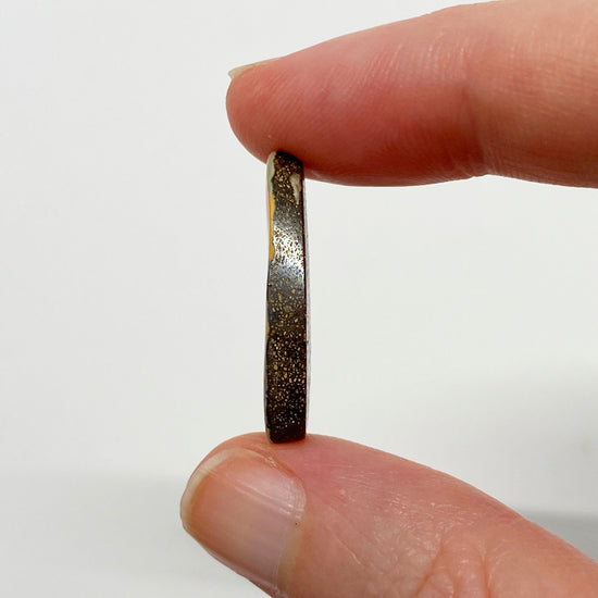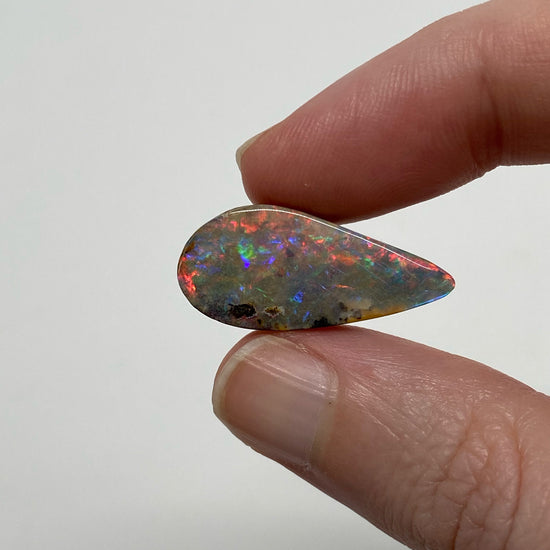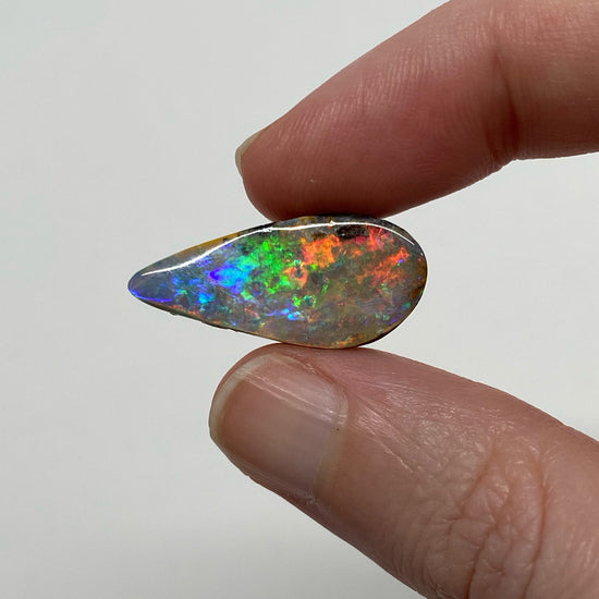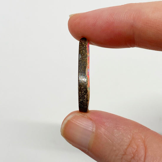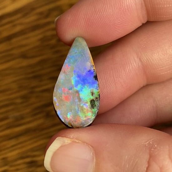 A lovely boulder opal with rolling rainbow colors and a light body tone.