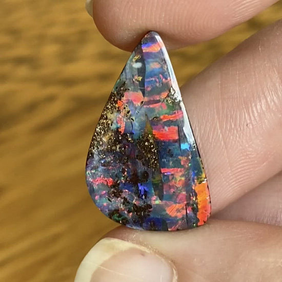 An amazing boulder opal with brilliant colors and a dark body tone.